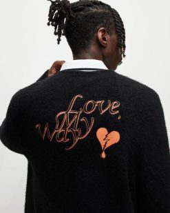 AllSaints cárdigan bordado a mi manera hombres L02RH21675 negro