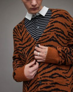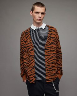 AllSaints cárdigan con motivo de tigre hombres L02RH21704 cobre