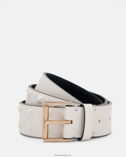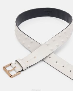 AllSaints cinturón con tachuelas cubierta de cuero lara mujer L02RH21030 blanco/latón cálido