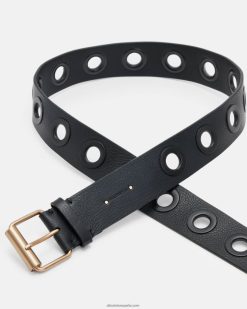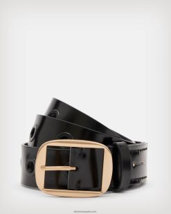 AllSaints cinturón con tachuelas cubierta de cuero lara mujer L02RH21029 negro/latón cálido