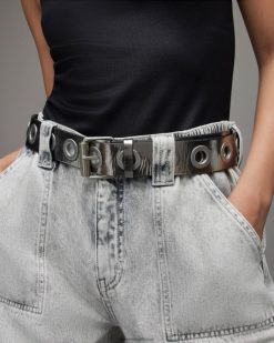AllSaints cinturón cruzado con tachuelas de cuero shae mujer L02RH21042 negro/níquel antiguo