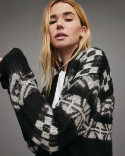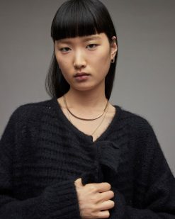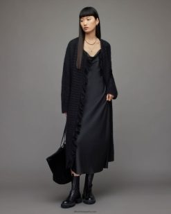 AllSaints cárdigan largo con flecos Selena mujer L02RH2555 negro