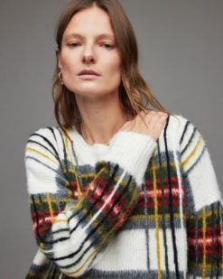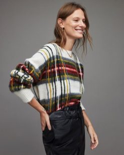 AllSaints suéter a cuadros sid mujer L02RH2565 crema/oliva/rojo