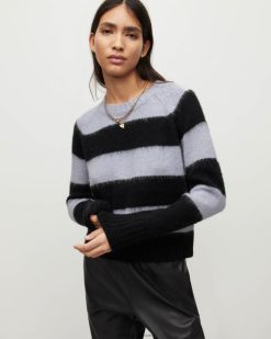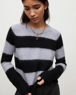 AllSaints suéter a rayas lou mujer L02RH2550 lila ceniza/negro