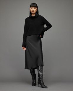 AllSaints vestido camisero Eva Gaia en mezcla de seda sombreada mujer L02RH271 lejía marrón