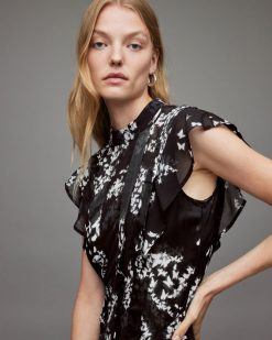 AllSaints Vestido etta mariana de mezcla de seda con efecto teñido anudado mujer L02RH217 atado azul