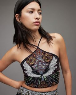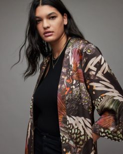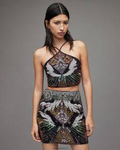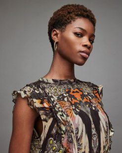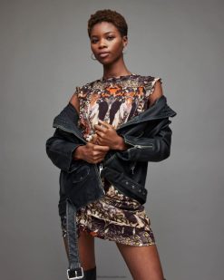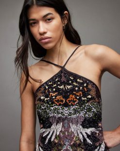 AllSaints vestido largo con estampado de mariposas de safiya gene mujer L02RH2149 joya verde