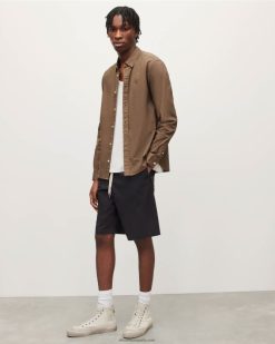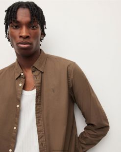 AllSaints camisa hawthorne con diseño de calavera de carnero hombres L02RH21321 marrón apagado