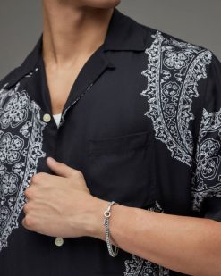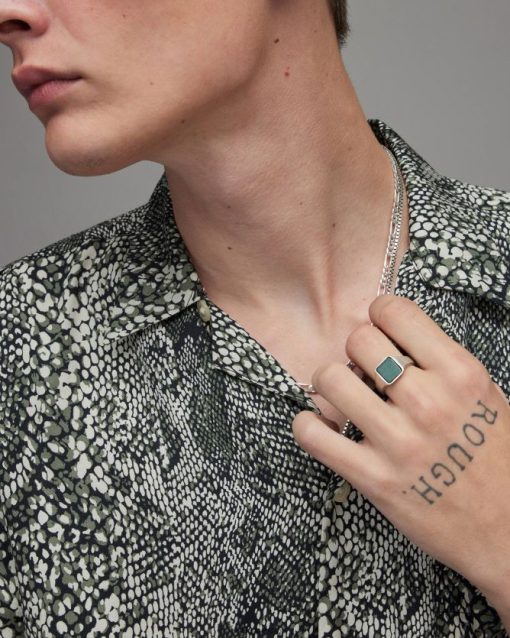 AllSaints anillo de cadena de plata de ley con forma de pirámide hombres L02RH22000 plata caliente