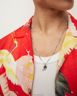 AllSaints collar subterráneo con etiqueta de plata esterlina hombres L02RH21954 plata caliente