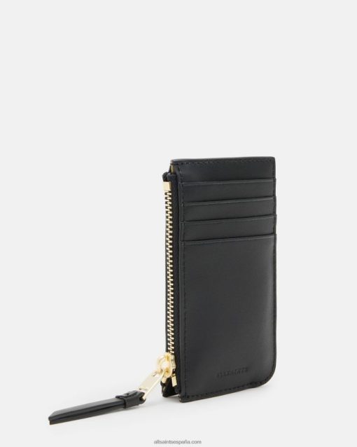 AllSaints billetera de cuero marlborough mujer L02RH2950 negro