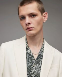 nos gusta la chaqueta azul. a rayas, pero no es obvio. este básico a la medida tiene un toque moderno. corte holgado con solapa en pico.