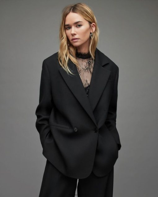relájate. el corin blazer es extragrande con detalle de hombros caídos. doble botonadura con colocación de bolsillo clásica: lo usarás con todo.