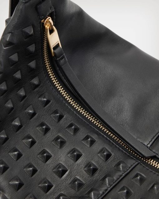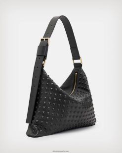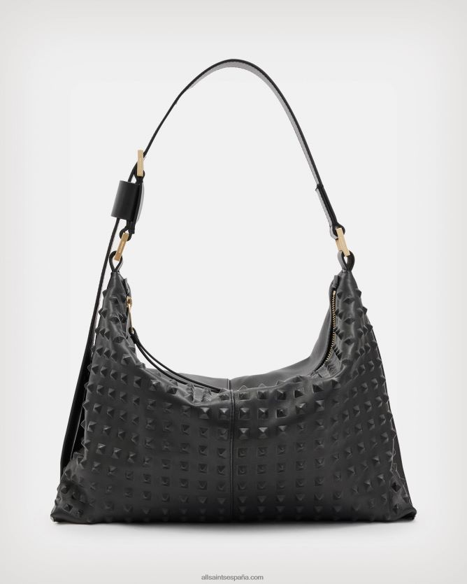 AllSaints bolso edbury de piel con tachuelas mujer L02RH21082 negro