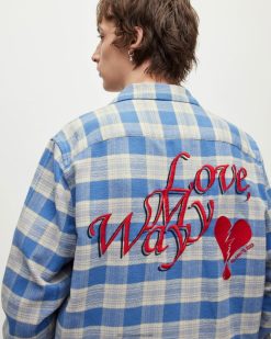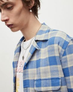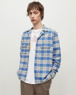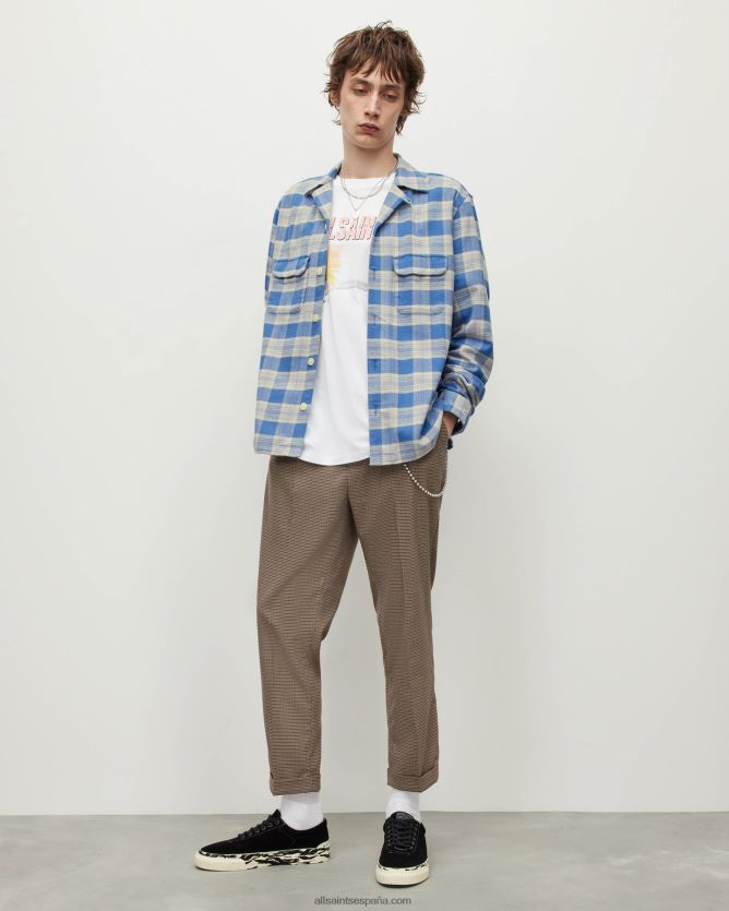AllSaints camisa a cuadros a mi manera hombres L02RH21374 azul