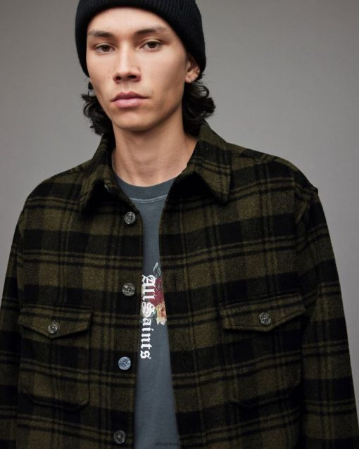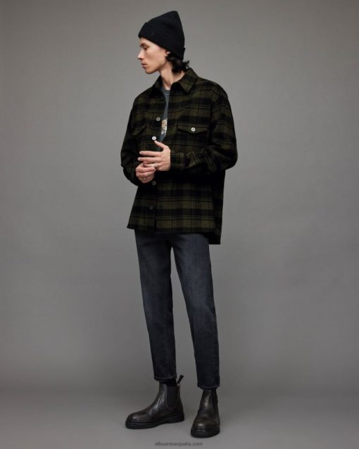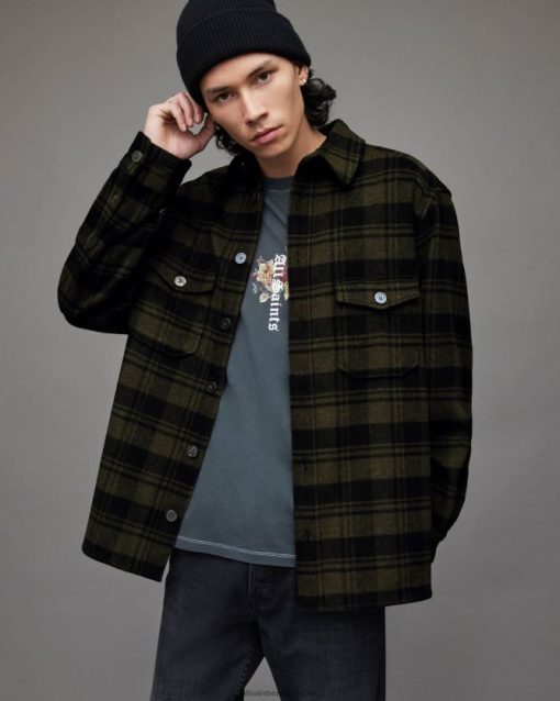 tu nuevo imprescindible. la camisa asbury está confeccionada con un tejido grueso de mezcla de lana. la forma militar es de gran tamaño. cheques por supuesto.