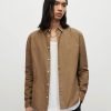 AllSaints camisa con estampado de felino y leopardo hombres L02RH21299 topo galleta