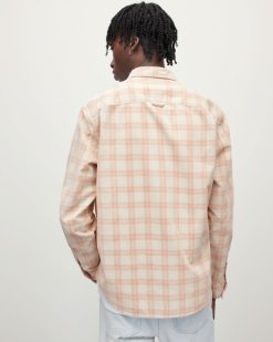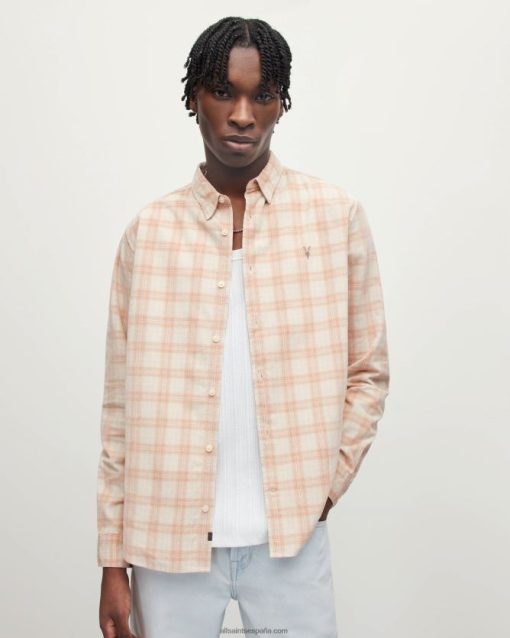 AllSaints camisa de cuadros de pana busquets hombres L02RH21309 coco blanco