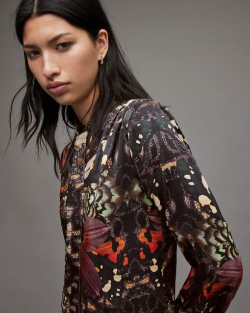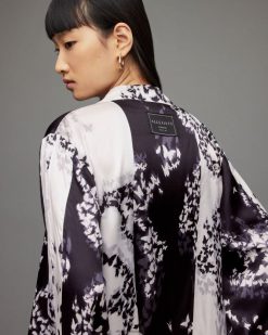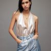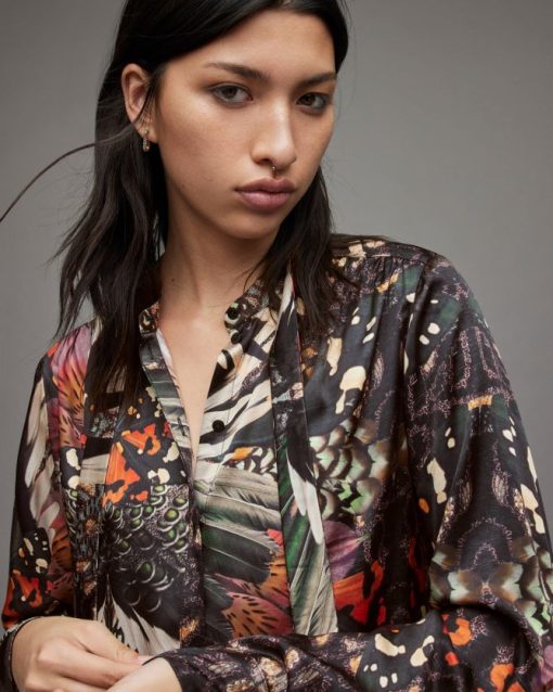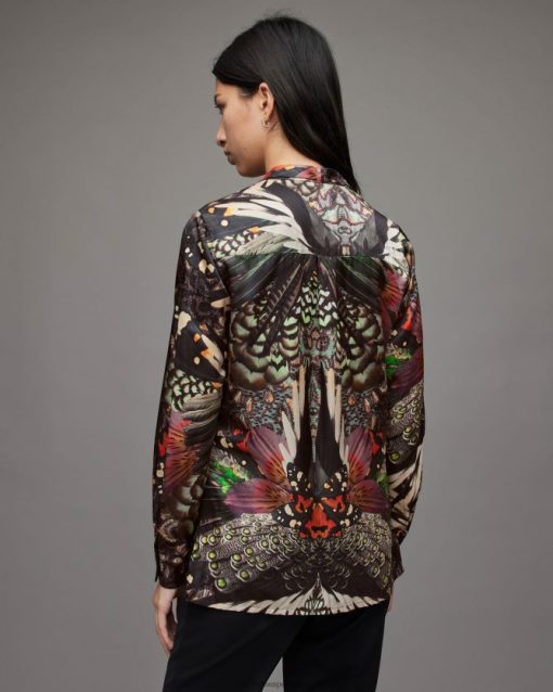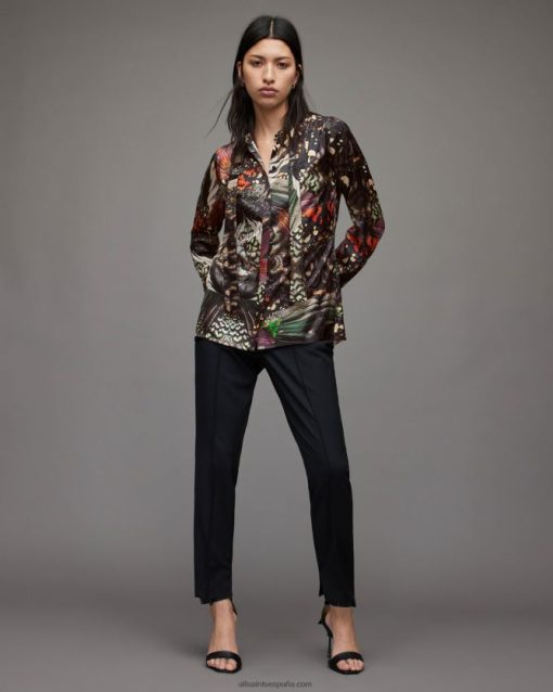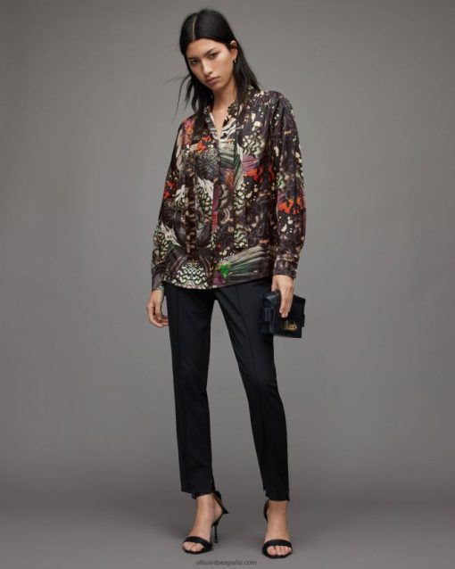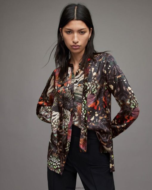 no te dejes atar. la camisa toni iris presenta un lazo removible. confeccionado con un tejido de mezcla de seda consciente, tiene una forma de corte ajustado con un cuello simplificado.