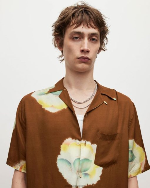 AllSaints camisa toulon floral hombres L02RH21457 marrón