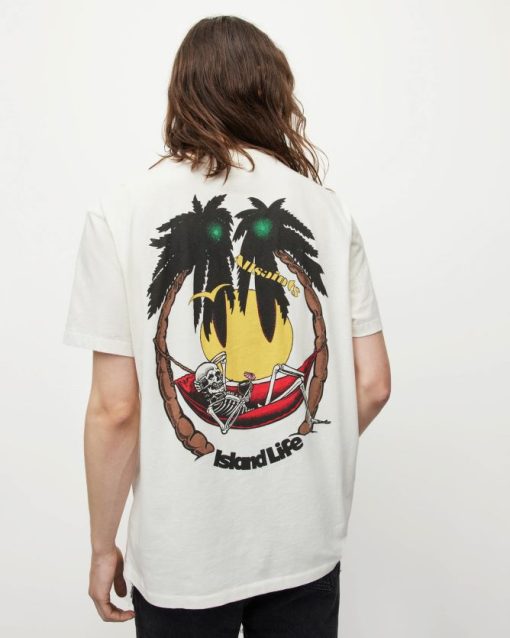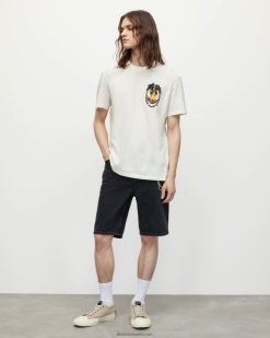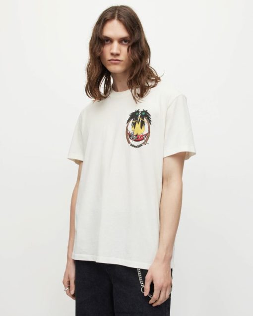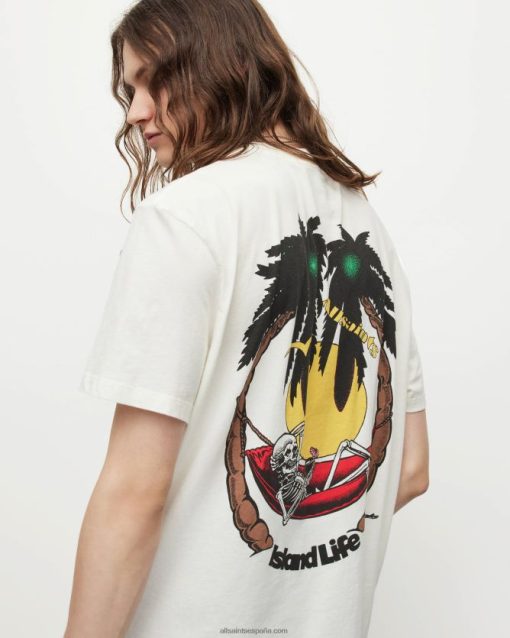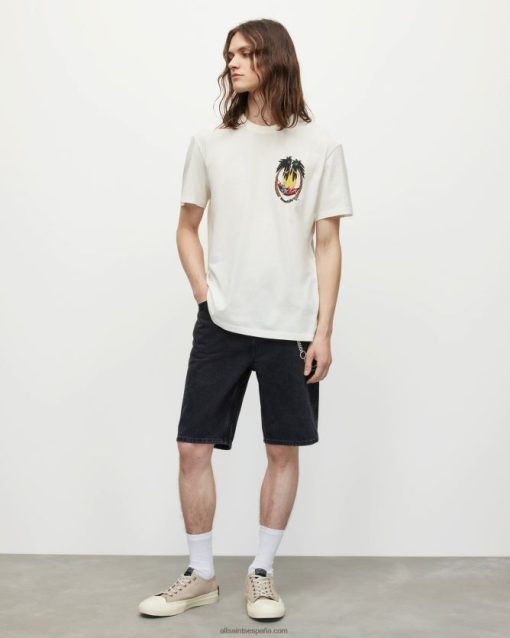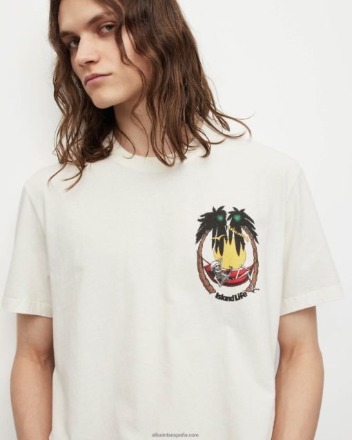 AllSaints camiseta reclinable con cuello redondo hombres L02RH21182 cala blanca