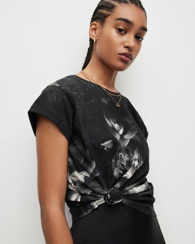 una pieza fácil – esta es la camiseta rosalia anna. Confeccionado con algodón suave y moldeado con una silueta relajada. presenta puños vueltos y nuestra nueva obra de arte floral.