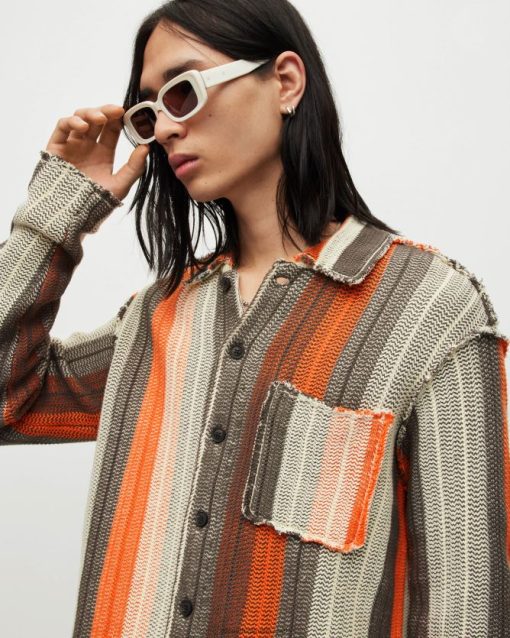 una forma atemporal, reinventada. el camión no es como cualquier otro cárdigan. un estilo camionero construido con rayas tejidas que no combinan. texturizado y deshilachado: esta es una pieza genial.