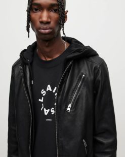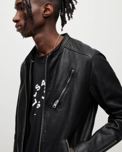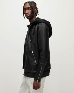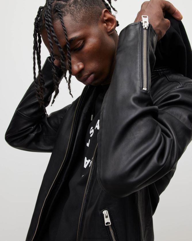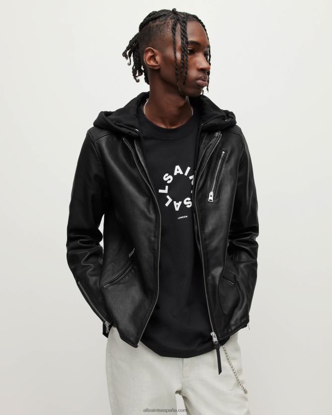 AllSaints chamarra biker de cuero Harwood hombres L02RH21462 negro