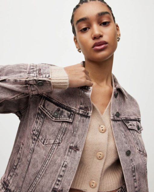 Denim para todos los días. la chaqueta de heno está confeccionada con algodón rosa lavado. cuenta con botones metálicos en el mango y un fuerte pulido en los bordes.
