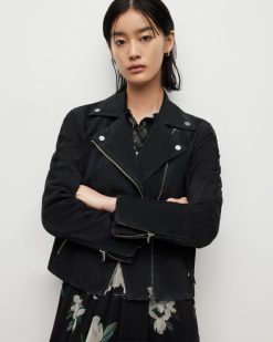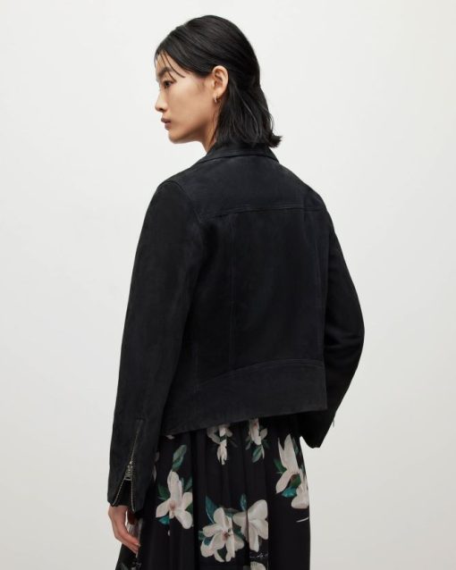 mantenlo simple. la chaqueta de motorista dalby presenta dos bolsillos inferiores y detalles metálicos mínimos, sobre un fondo de ante suave: un clásico atemporal.