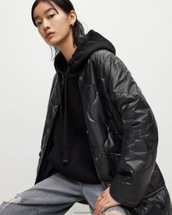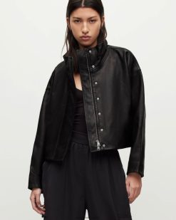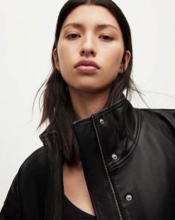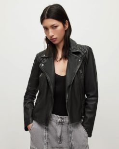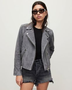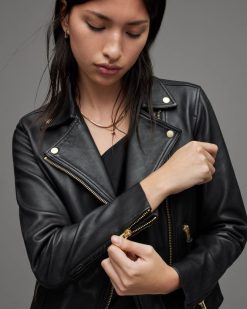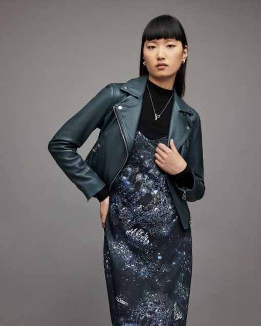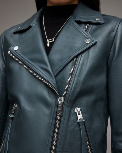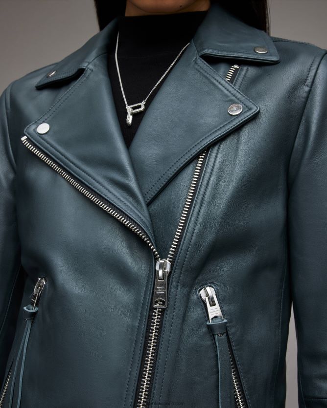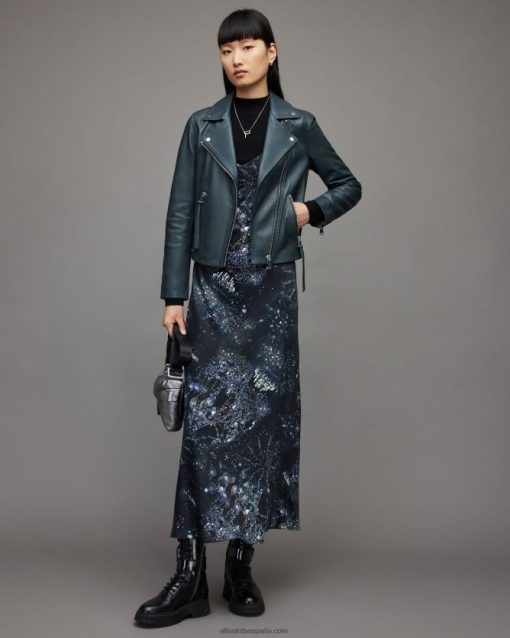 AllSaints chaqueta biker de cuero dalby mujer L02RH22073 mezclilla profunda