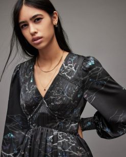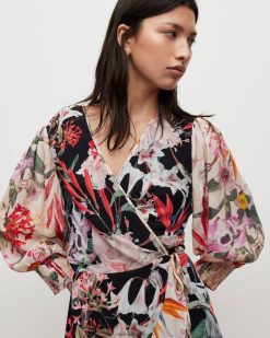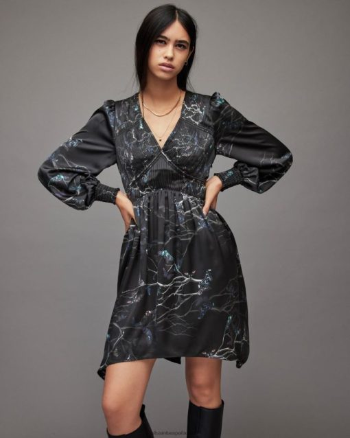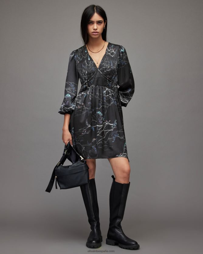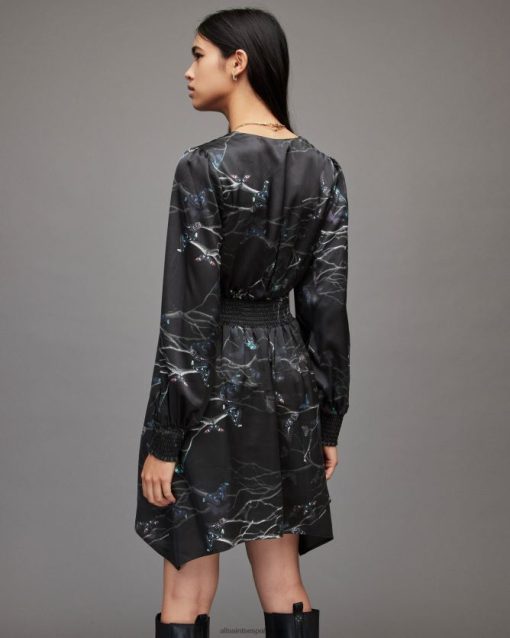 nuestro vestido estelle más vendido, pero más corto. el esta tiene un amplio escote en V con mangas largas. estructurado en la cintura con sutiles pliegues – un dobladillo asimétrico en punta le da un acabado vaporoso.