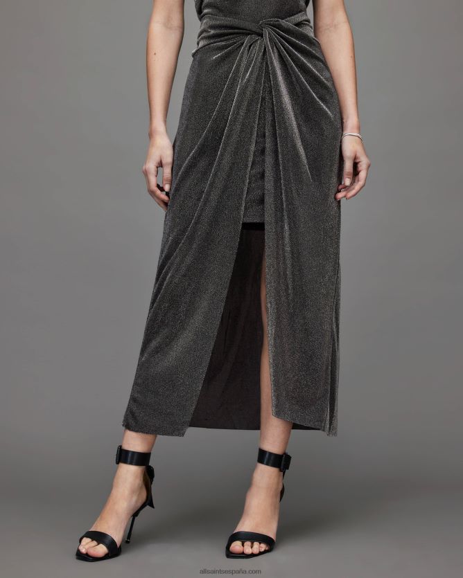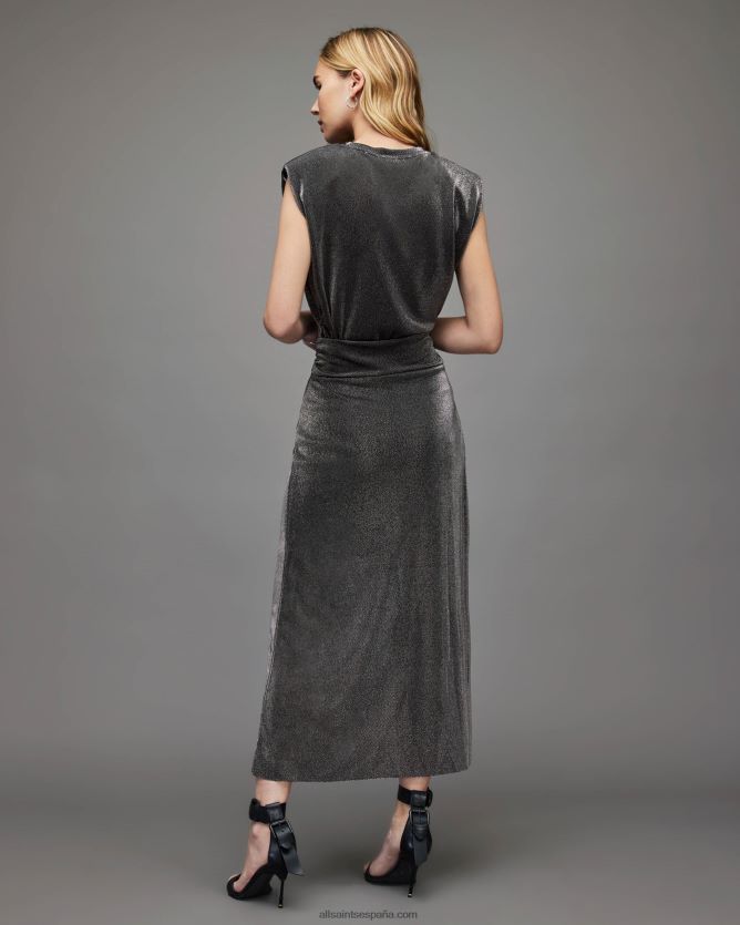 AllSaints falda metalizada sami mujer L02RH2732 plata