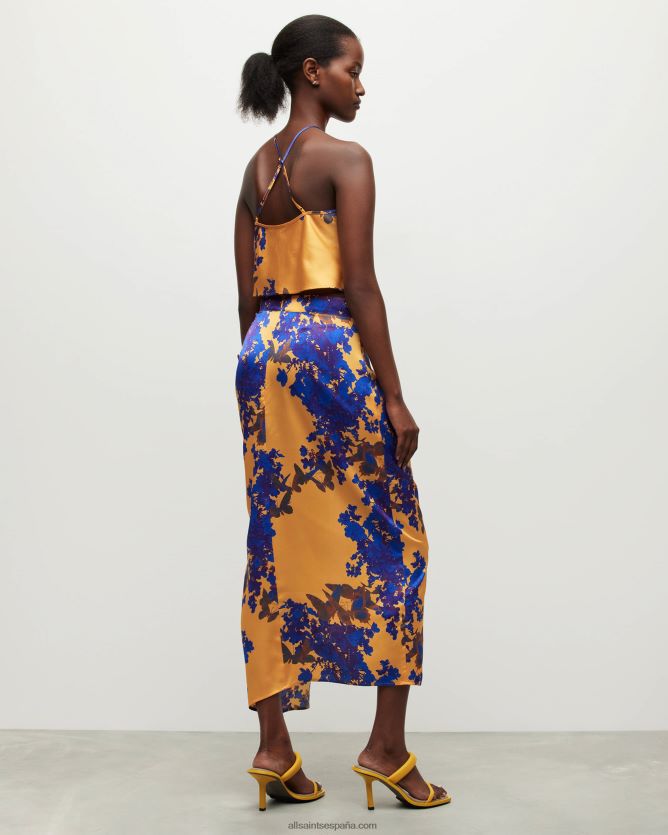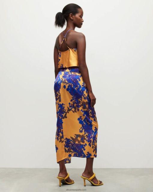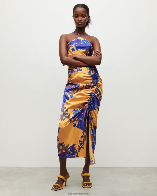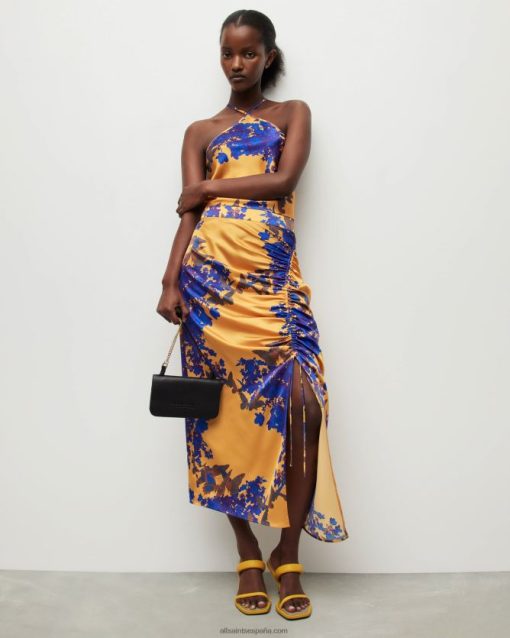 AllSaints falda midi carla venetia mujer L02RH2707 naranja