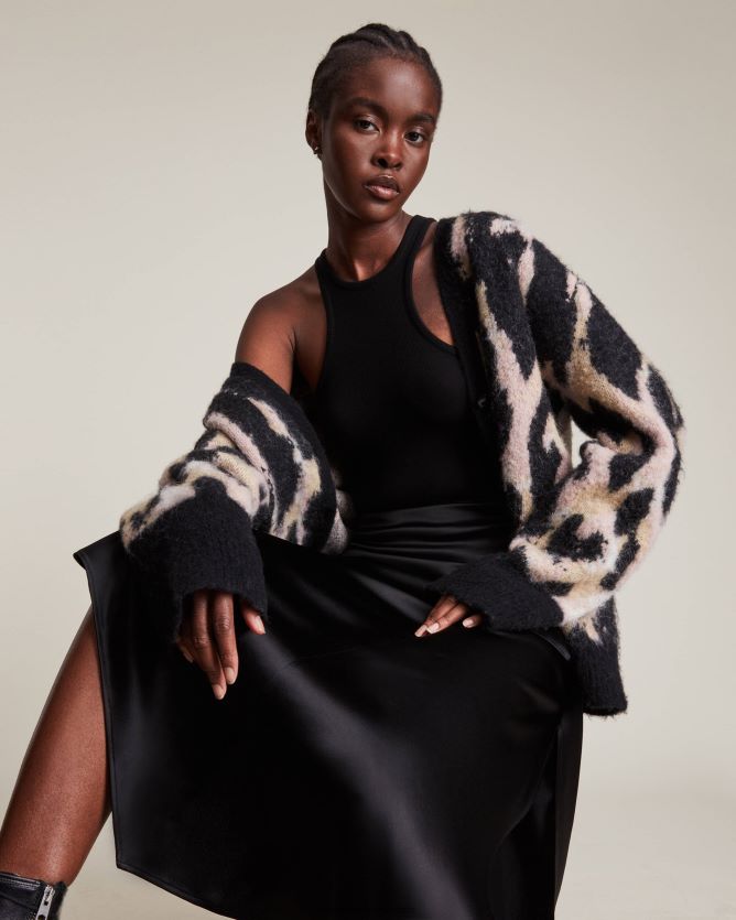 - la modelo mide 5’11”/180 cm y lleva una talla US 6