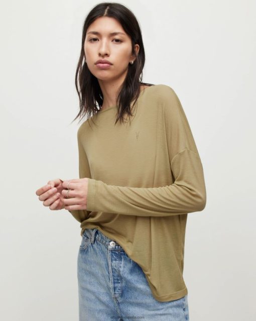 AllSaints francesco rita camiseta mujer L02RH2358 verde oliva pálido