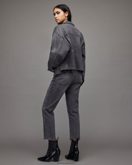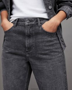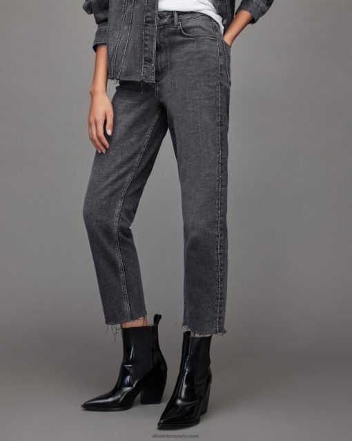 Vaquero básico que brilla. los rali tienen cintura alta y un corte recto y relajado. con dobladillos sin rematar y estilo clásico de cinco bolsillos. también hemos añadido sutiles detalles de strass: échale un vistazo más de cerca.