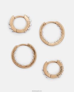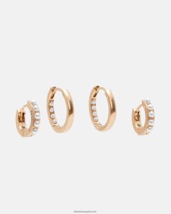 Cuentas de perlas en aros dorados: estos aretes son imprescindibles. un juego de dos para mezclar y combinar los hace ideales para el uso diario. encuentre nuestra firma grabada.