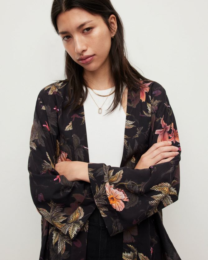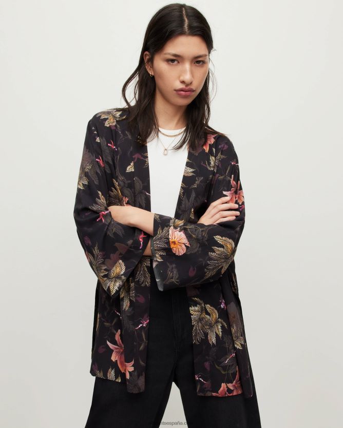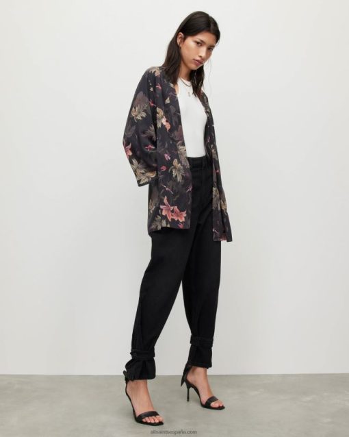 AllSaints kimono floral carina viviana mujer L02RH2234 negro