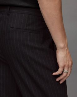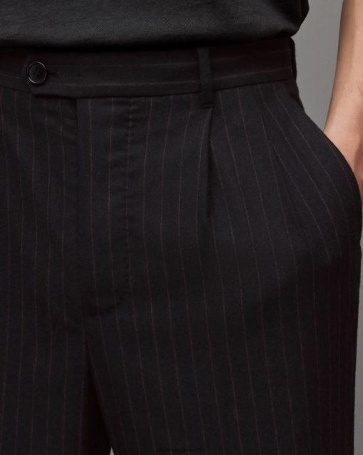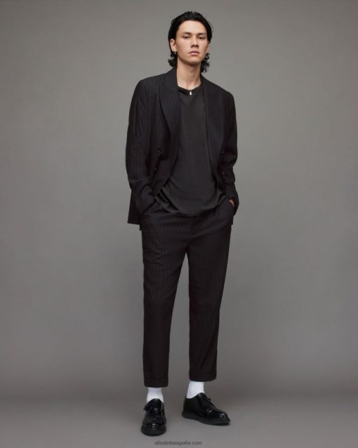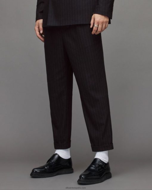 nos gustan los pantalones azules. a rayas, pero no es obvio. son un elemento básico a la medida tiene un toque moderno. Con un ajuste ceñido relajado con un frente plisado y vueltas fijas.
