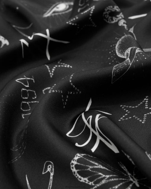 Completa el look con la bandana ventra. Hecho de seda, nuestra obra de arte es audaz. es una adición divertida: combina tu atuendo, diviértete.
