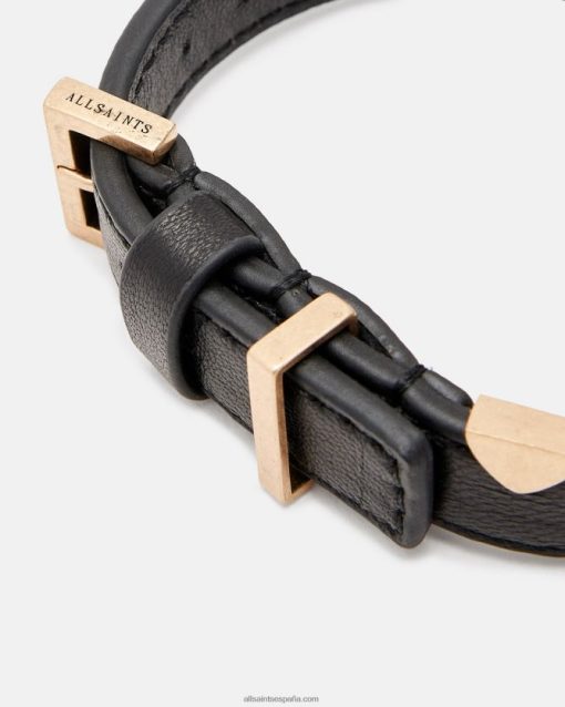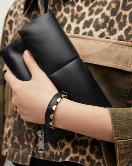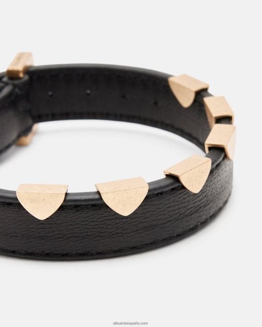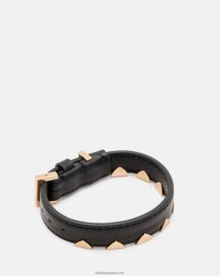 cuero y nuestros exclusivos herrajes metálicos: esto es de todos los santos. la pulsera con tachuelas shae está confeccionada en cuero con tachuelas piramidales en los bordes.