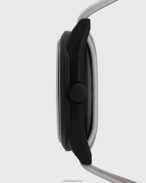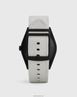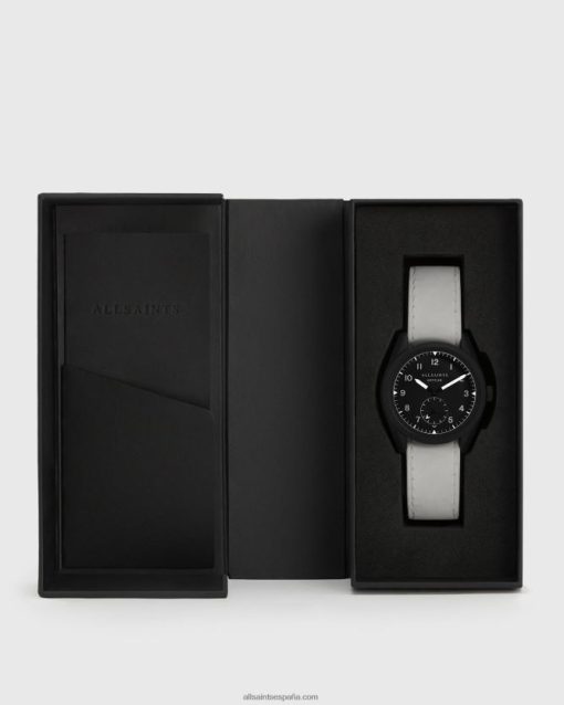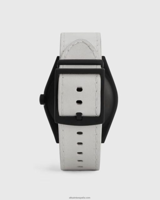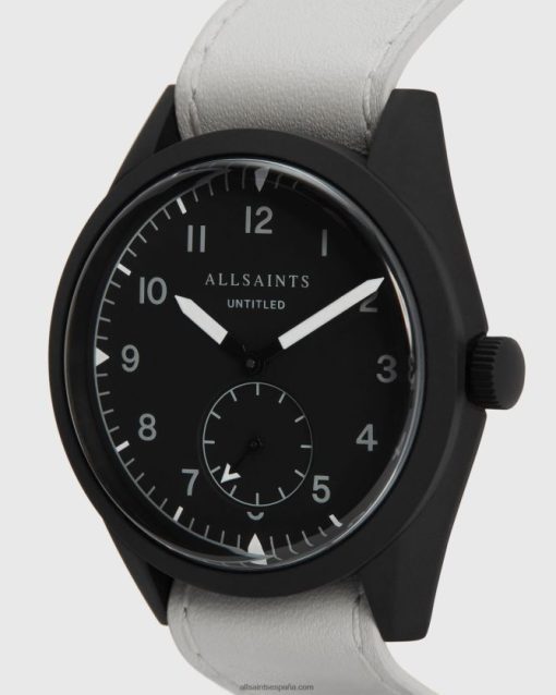 es hora. la colección debut de relojes allsaints está aquí. la colección sin título consta de una gama de clásicos reinventados. untitled iv presenta una caja de acero inoxidable negro mate junto con una correa de cuero blanco suave.