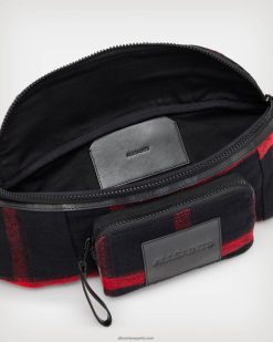 AllSaints revisar la riñonera hombres L02RH22045 negro rojo