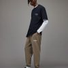 cuando la agenda es relajada. busca tus pantalones de chándal saka. algodón orgánico con forma de corte ajustado. el lavado está moteado y nuestro bordado ramskull se encuentra en la pierna izquierda.