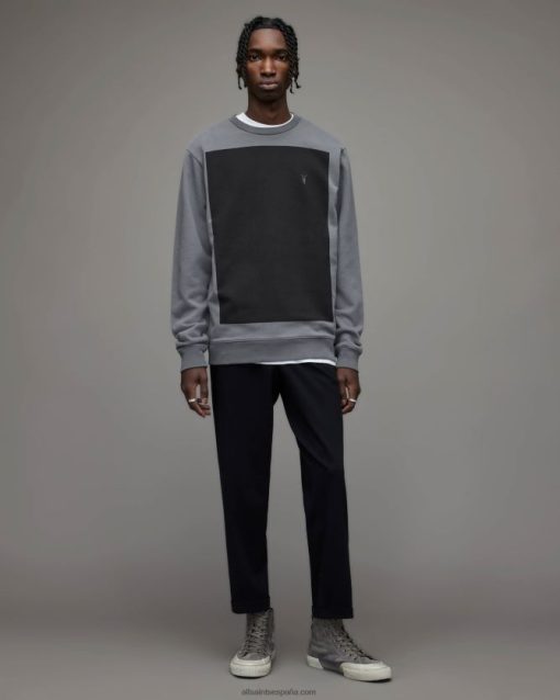AllSaints sudadera con cuello redondo lobke hombres L02RH21632 gris/negro azabache
