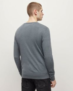 AllSaints suéter con cuello redondo de merino mode hombres L02RH21663 como azul marga