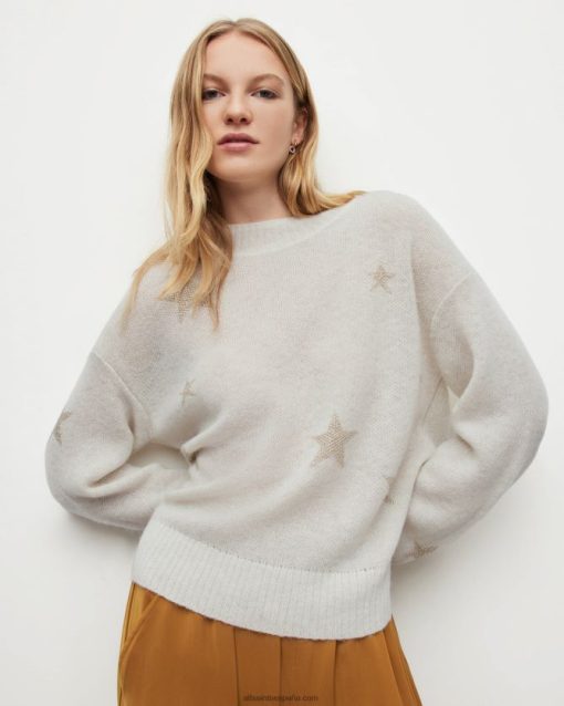 AllSaints suéter rhoda con cuello alto mujer L02RH2528 blanco tiza