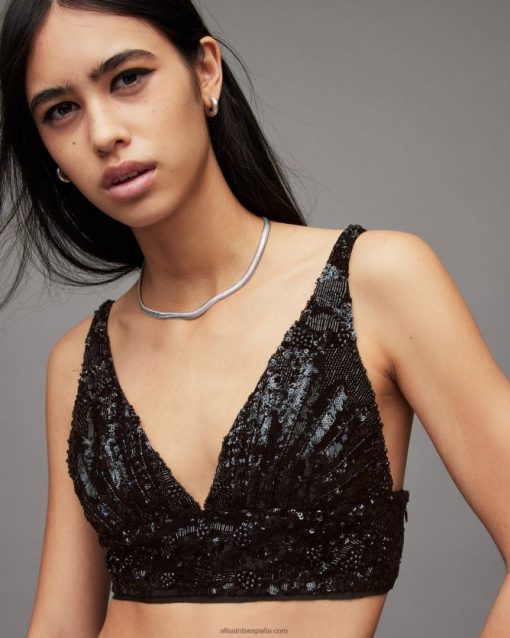 hora de brillar. así embellece allsaints. este bralette con cuello en V es parte del conjunto a juego. llega la temporada de fiestas.