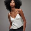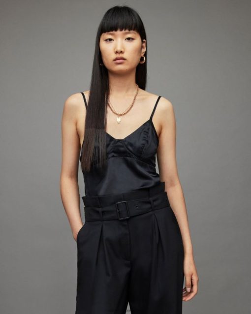 córtalo con esta camisola. la silueta con cuello en V está revestida en el busto con paneles fruncidos. ajusta los tirantes y encuentra tu calce perfecto: esta es la camiseta rali.